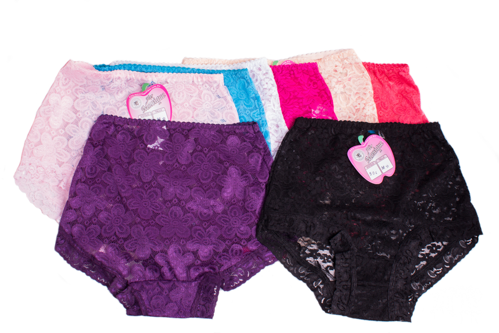 Pantaleta completa de encaje licra con puente de algodón. Colores surtidos.